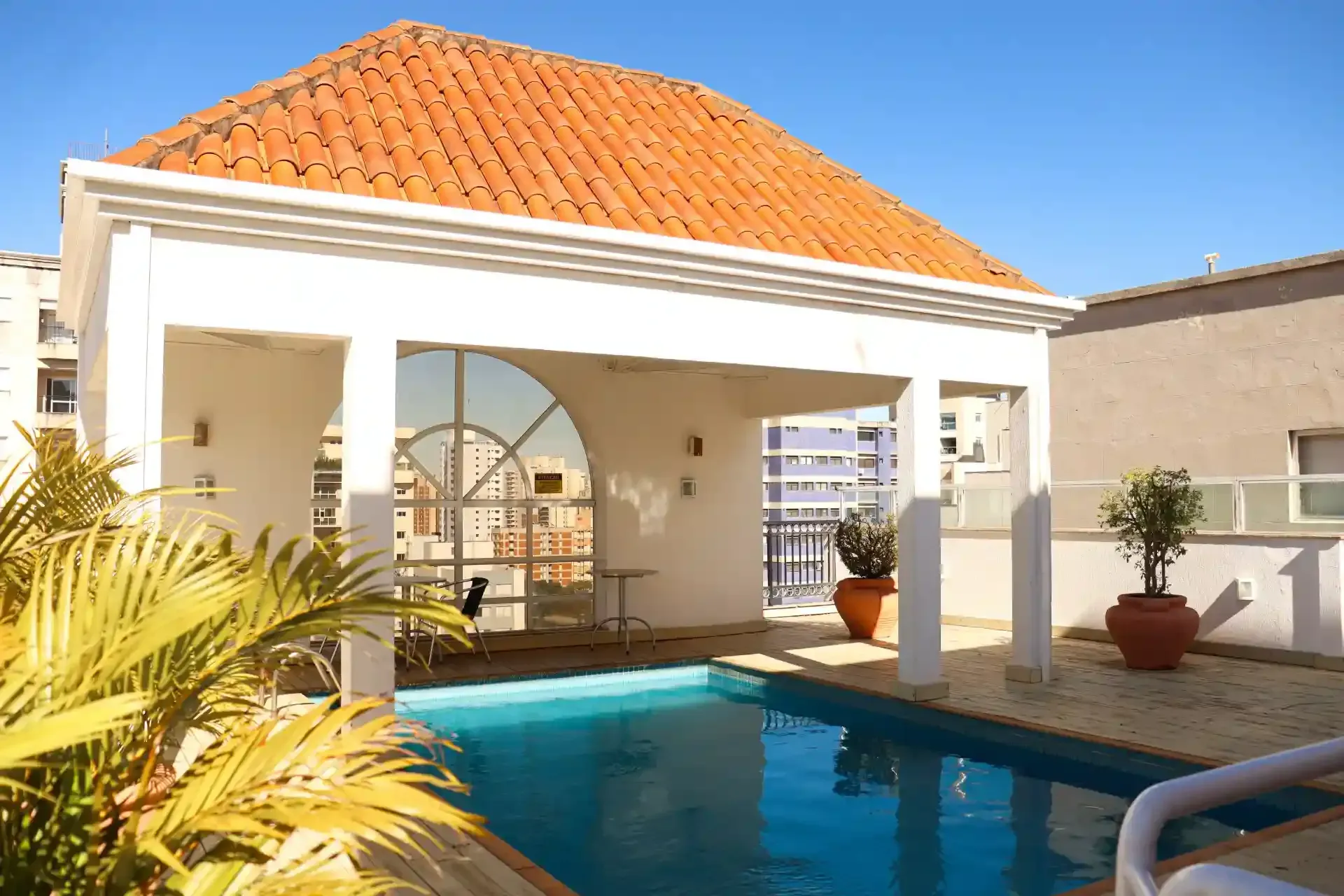 Sabemos que mesmo em uma hospedagem pontual ou de longa duração estilo flat, o conforto e bem-estar são fundamentais para garantir uma excelente experiência. É por isso, que no Vitória Hotel Residence Newport você encontra uma sala de ginástica para manter sua rotina de exercícios, uma aconchegante piscina e solário para seu relaxamento e bem-estar.